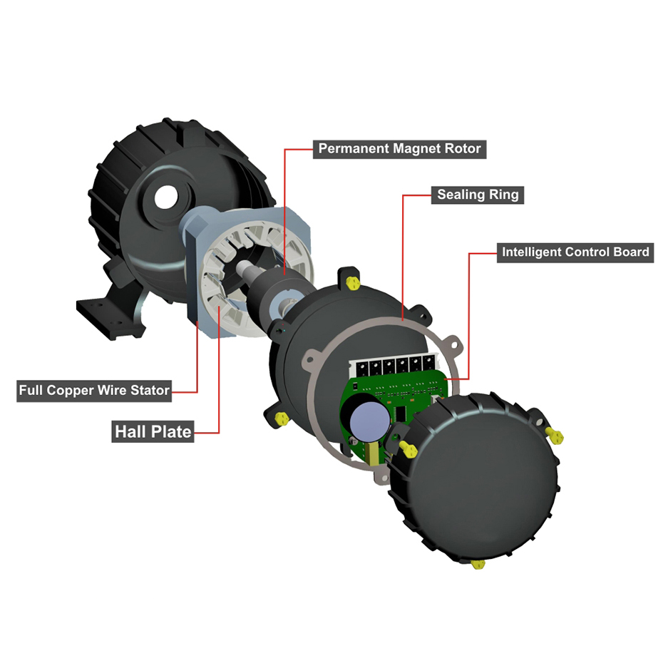 محرك DC بدون فرش (BLDC) هو محرك بدون فرش ومبدلات، يُعرف أيضًا باسم محرك بدون مبدل أو محرك DC متزامن. محطة الإدخال لـ BLDC هي تيار مباشر، ولكن في جوهرها، يتم تحقيق تأثير التيار المتردد عن طريق التبديل الدوري للمفتاح الرئيسي للعاكس، بحيث يولد ملف الملف مجالًا مغناطيسيًا متغيرًا، ويستمر دوار المحرك في الدوران تحت تأثير عزم الدوران المستمر.